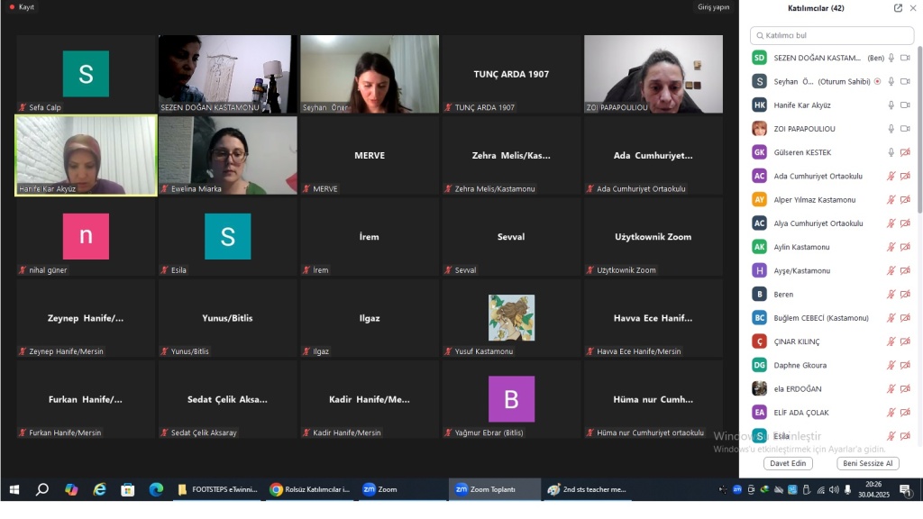 İn the Footsteps of Tastes Textures and Dances Cultural Heritage adlı ETwinning projemizin Nisan ayında gerçekleştirilen online toplantısında Türkiye-Yunanistan ve Polonya'nın geleneksel halk danslarını tanıdık. Bu sayede öğrencilerimiz farklı kültürler hakkında bilgi edinip kendi geleneksel halk danslarımızı da tanıtma imkanı buldular.